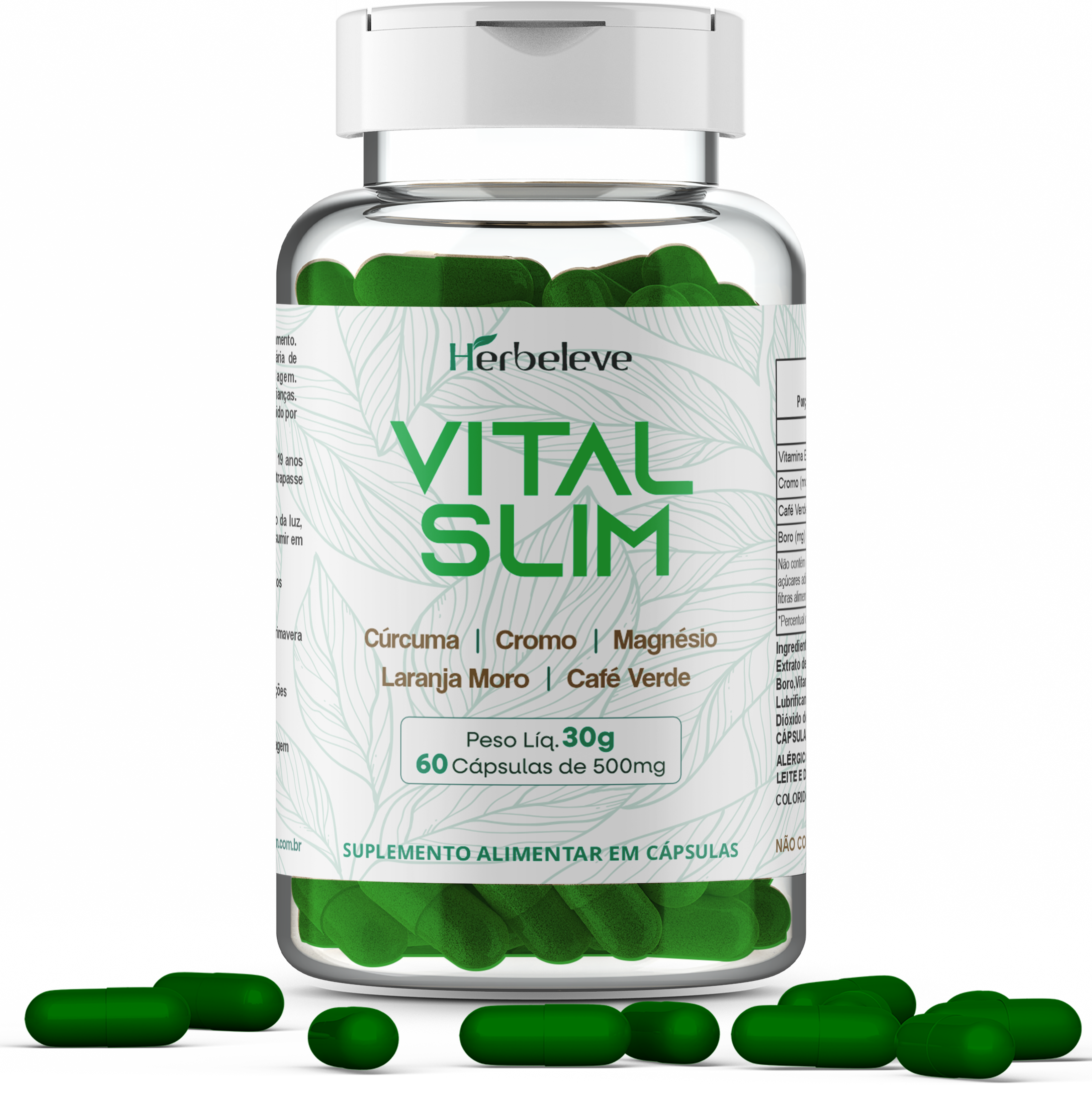 Vital Slim oferece a combinação perfeita de ingredientes naturais que você precisa para turbinar sua Dieta e potencializar os Resultados. Com ativos como Café Verde, Cúrcuma e Cromo, ele acelera o Metabolismo e auxilia na Queima de Gordura sem abrir mão da sua Saúde.